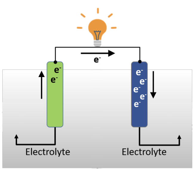 A battery converts chemical energy into electrical energy through a redox reaction:
