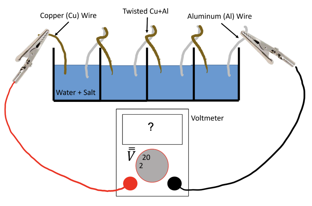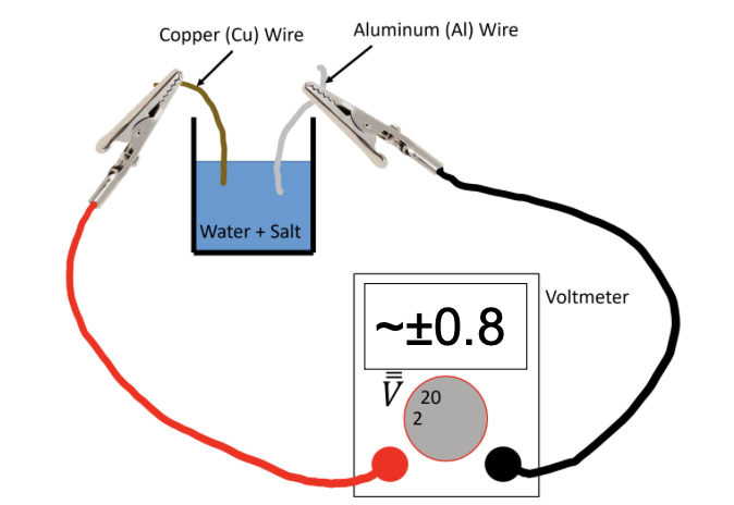 - Insert Al wire (–) and Cu wire (+), not touching each other