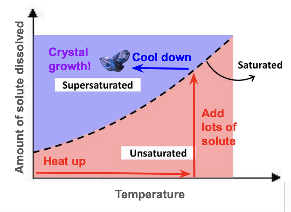 1. Heat water and dissolve as much solute as possible → supersaturated.