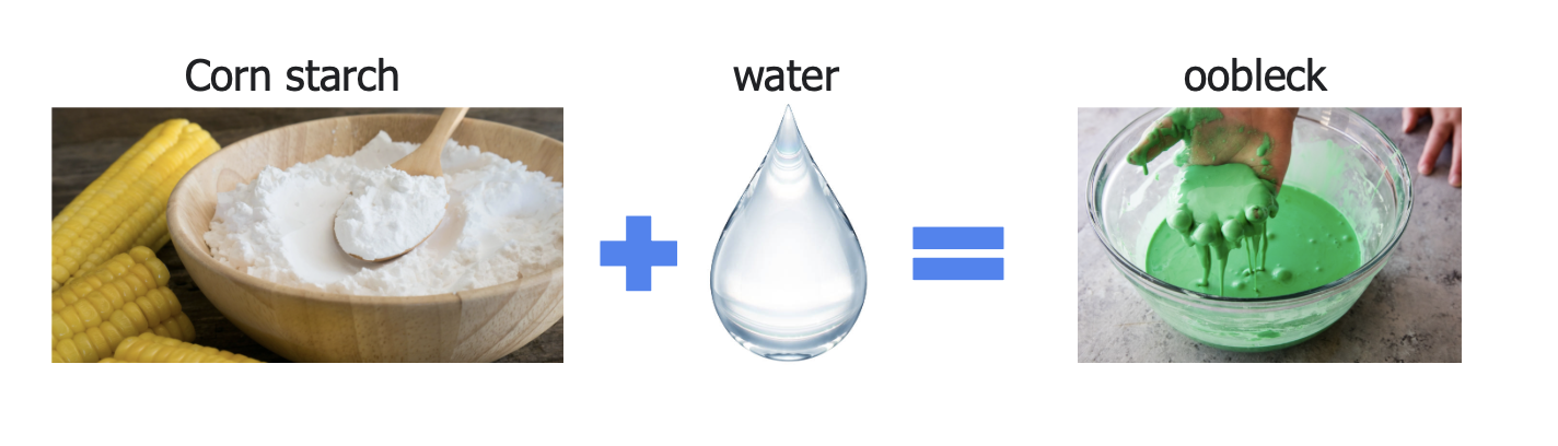 Oobleck is a simple non-Newtonian fluid made from cornstarch and water.